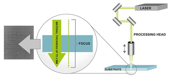 显微镜载玻片、透镜和显示器:M-Cut激光切割工艺在工件的几何形状方面没有任何限制